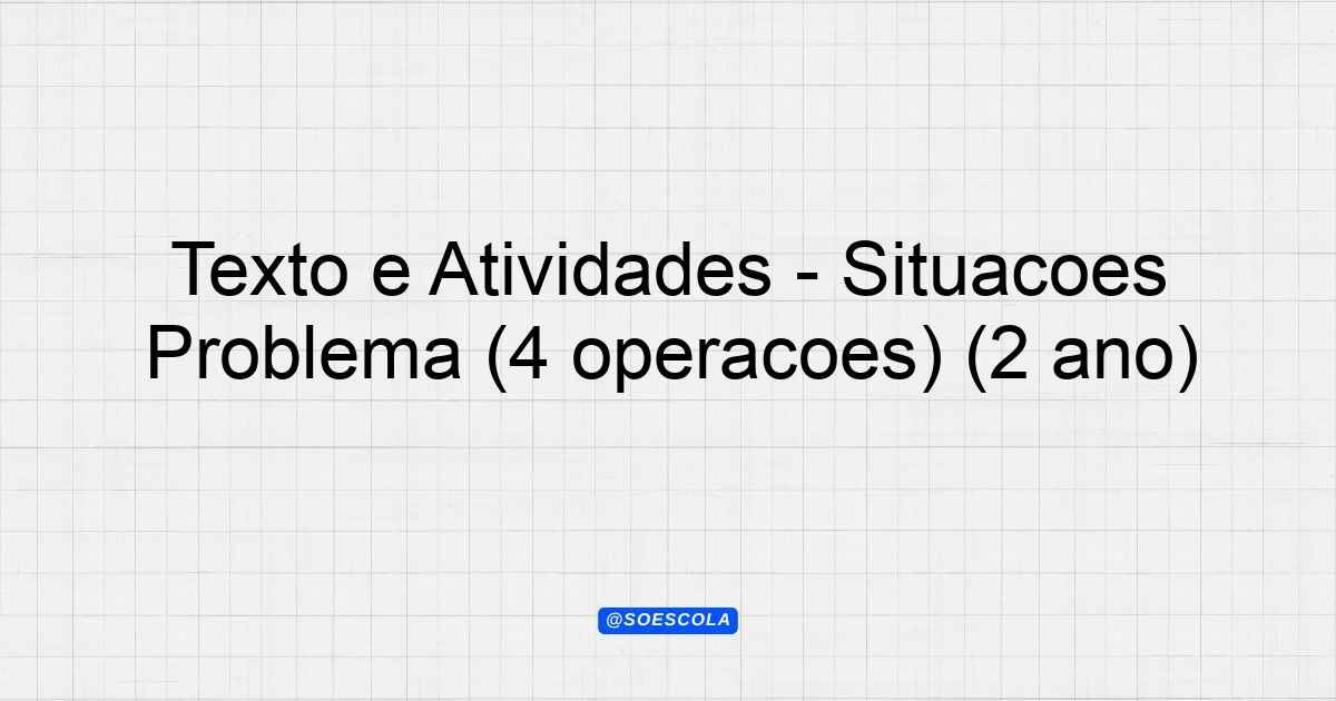 Continue lendoNesta postagem vamos disponibilizar um texto e atividades para trabalhar com alunos do 2º ano na disciplina Matemática. Tema: Situações