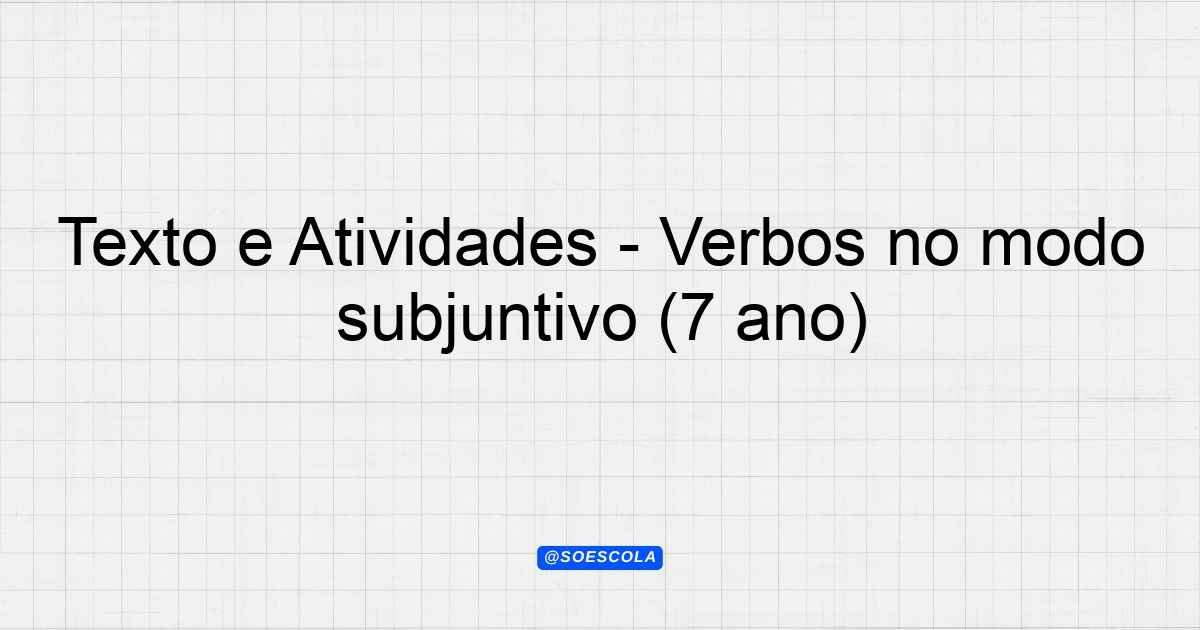 Continue lendoNesta postagem vamos disponibilizar um texto e atividades para trabalhar com alunos do 7º ano. Tema: Verbos no modo subjuntivoEtapa: