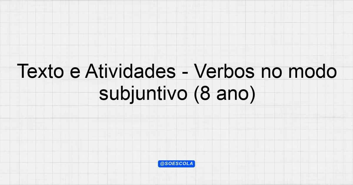 Continue lendoNesta postagem vamos disponibilizar um texto e atividades para trabalhar com alunos do 8º ano. Tema: Verbos no modo subjuntivoEtapa: