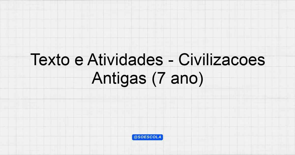 Continue lendoNesta postagem vamos disponibilizar um texto e atividades para trabalhar com alunos do 7º ano. Tema: Civilizações AntigasEtapa: 7º anoTipo