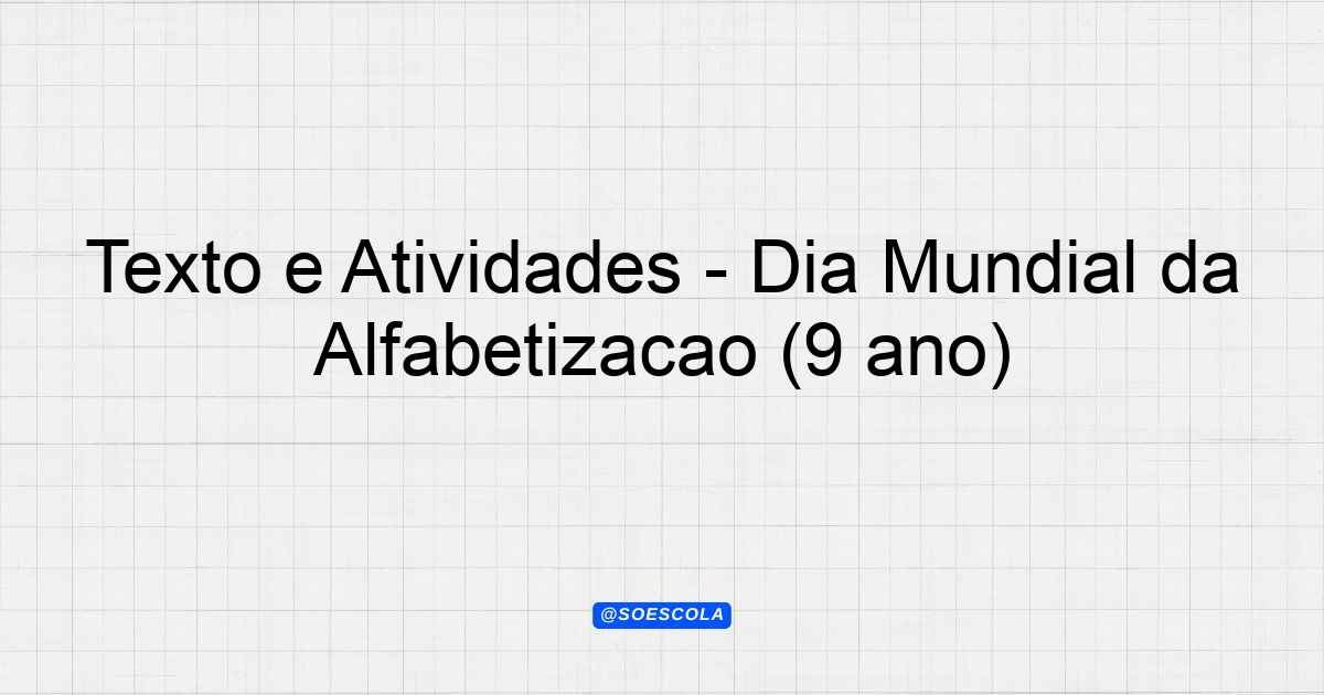 Texto e Atividades – Dia Mundial da Alfabetização (8º ano)