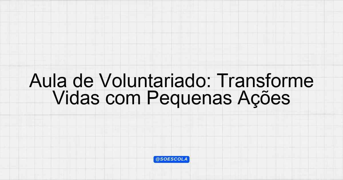 Continue lendoAula de Projeto de Vida – Voluntariado 📚 Tipo: Projeto de Vida 🎯 Tema: Voluntariado 🎓 Série/Ano: 9º ano EF
