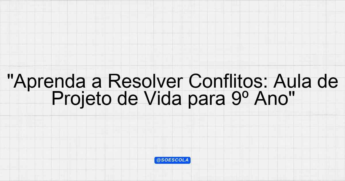 “Aprenda a Resolver Conflitos: Aula de Projeto de Vida para 9º Ano”