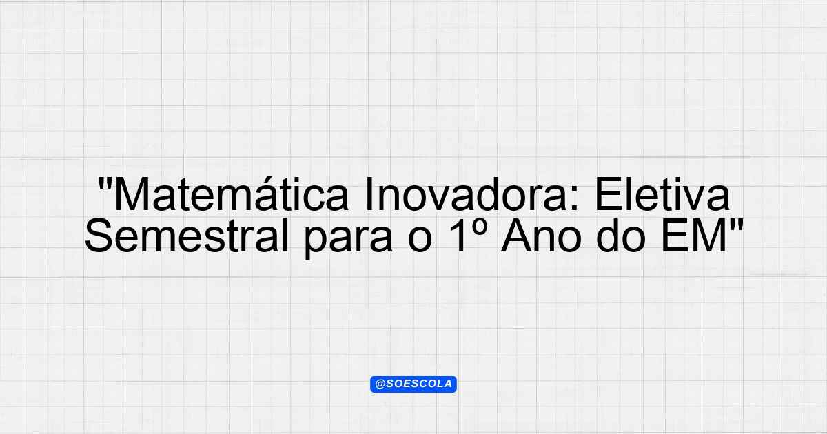 Continue lendoPlanejamento de Disciplina Eletiva 🎯 Título: Matemática 📚 Área: Matemática 🎓 Série/Nível: 1º ano EM ⏰ Duração: Semestral 👥 Vagas:
