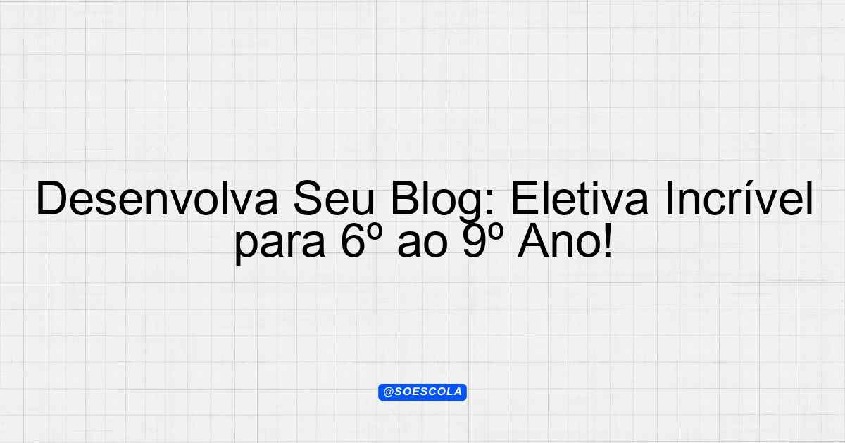 Desenvolva Seu Blog: Eletiva Incrível para 6º ao 9º Ano!
