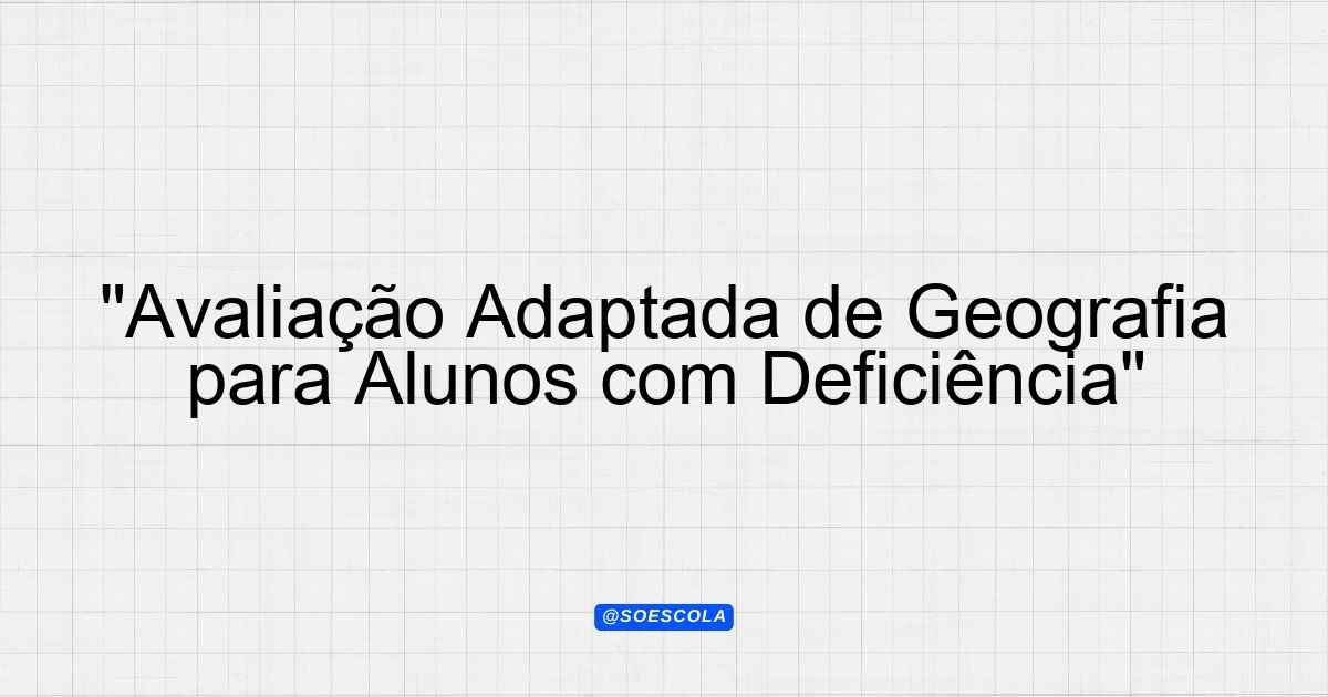 Continue lendo🎯 Ideias para Avaliação Adaptada 📚 Disciplina: Geografia 🎓 Série/Ano: 9º ano EF 🧠 Dificuldade: Deficiência Intelectual 📋 Tipo de