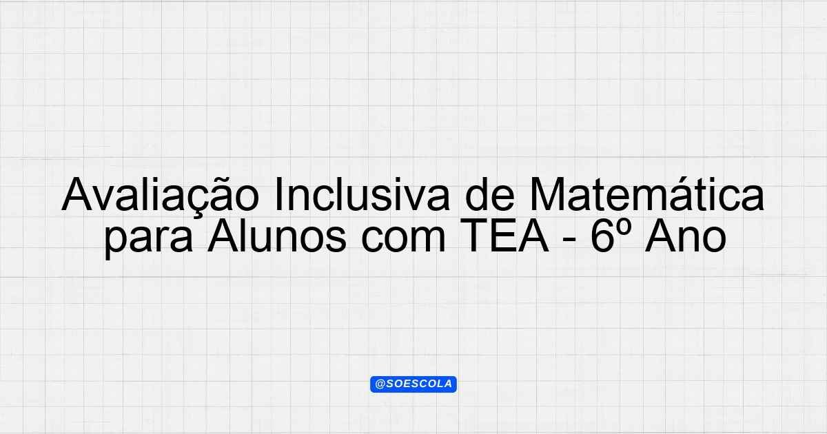 Continue lendo🎯 Ideias para Avaliação Adaptada 📚 Disciplina: Matemática 🎓 Série/Ano: 6º ano EF 🧠 Dificuldade: TEA (Autismo) 📋 Tipo de