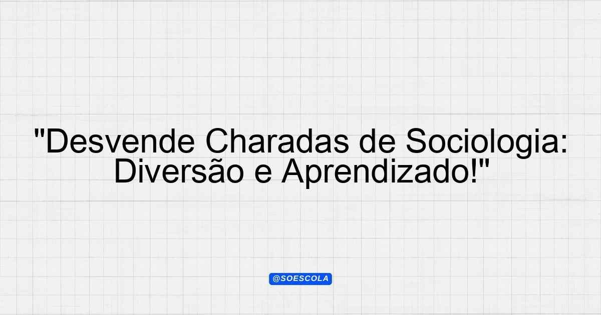Continue lendo🎲 Charadas: sociologia 📊 Nível: Fácil 👶 Faixa Etária: 15-17 anos 📚 Disciplina: Sociologia 🎯 Uso: Competição 📅 Data de