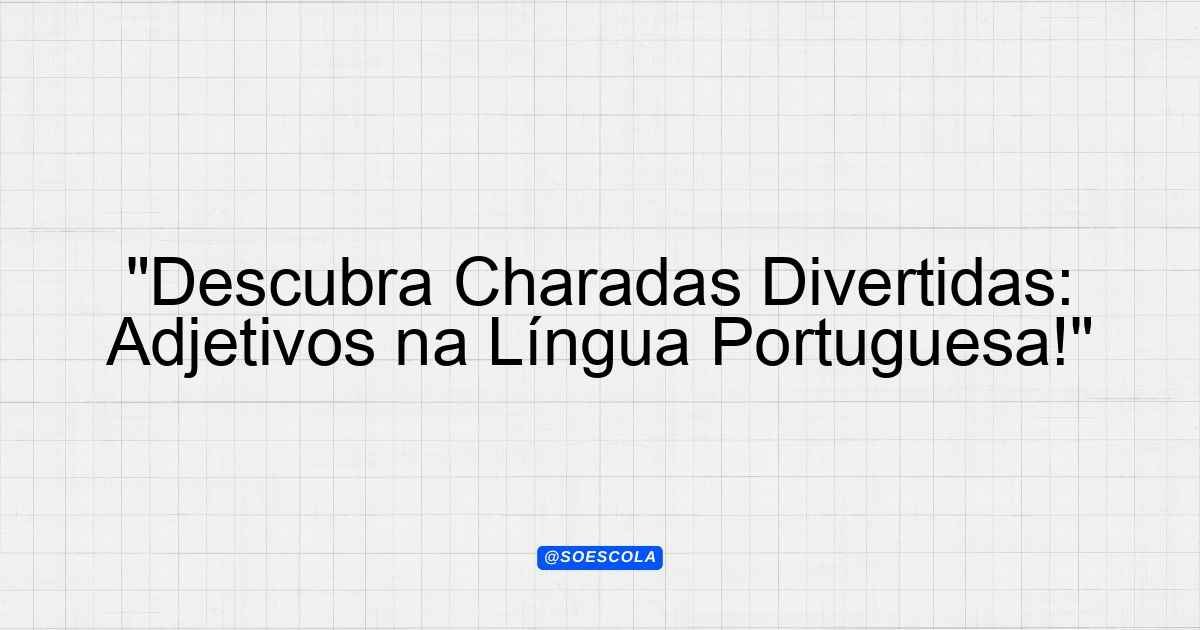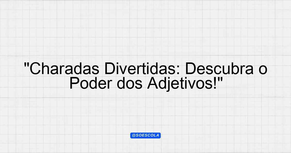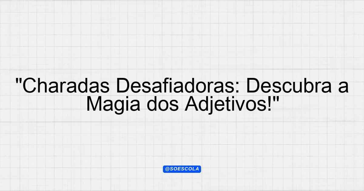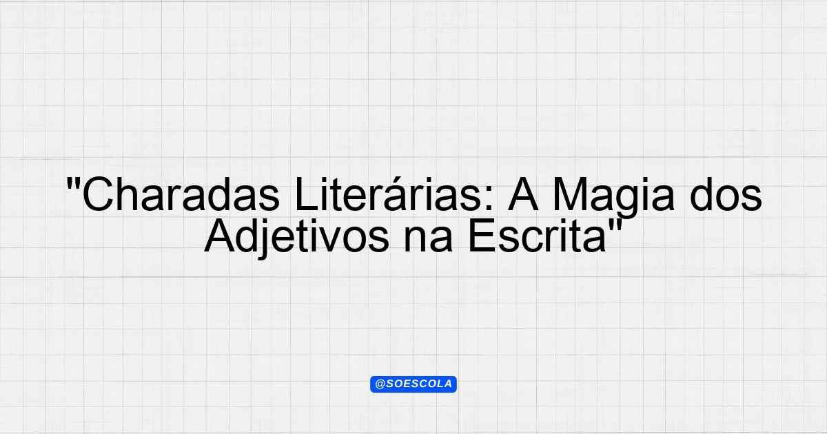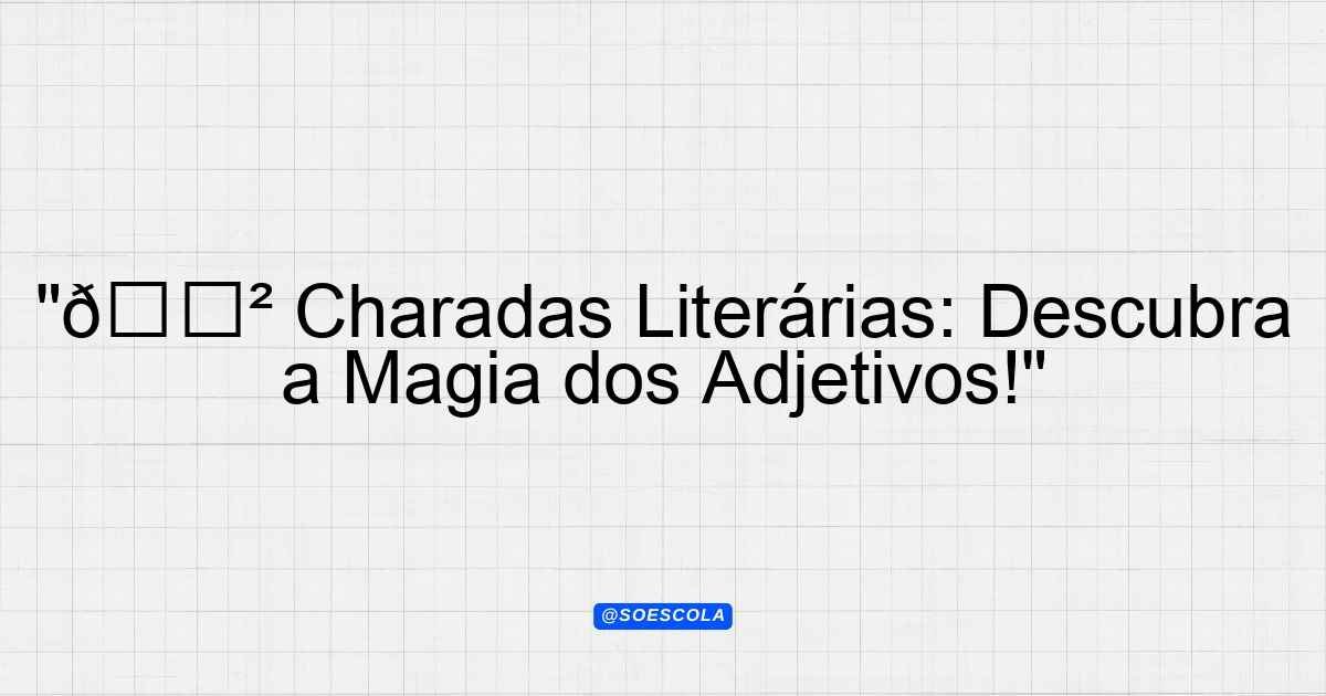 Continue lendo🎲 Charadas: A importância dos adjetivos na construção de sentidos nos textos literários 📊 Nível: Muito Difícil 👶 Faixa Etária: