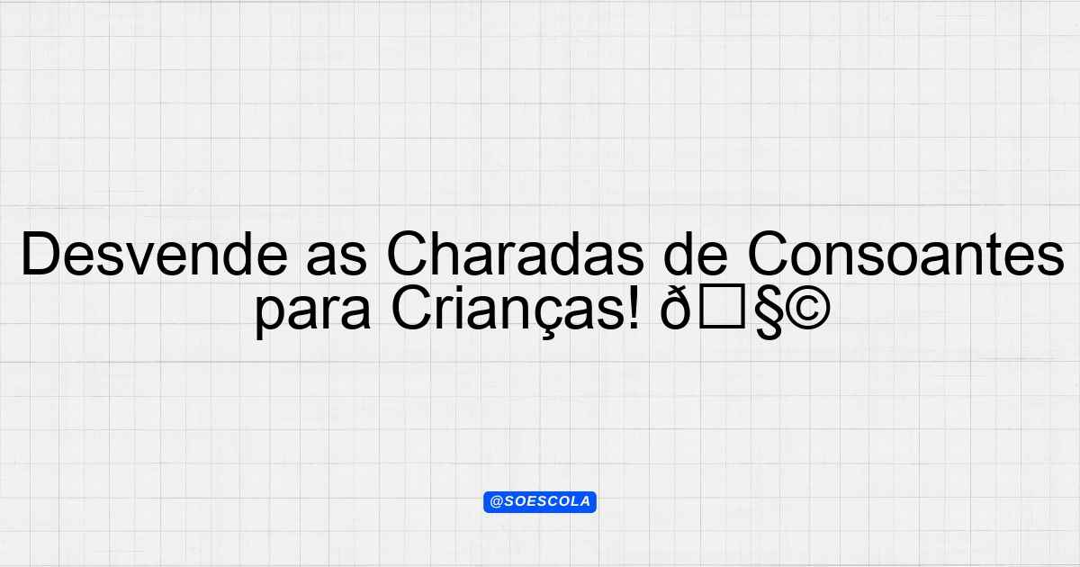 Continue lendo🎲 Charadas: Consoantes 📊 Nível: Médio 👶 Faixa Etária: 6-7 anos 📚 Disciplina: Língua Portuguesa 🎯 Uso: Tarefa de casa