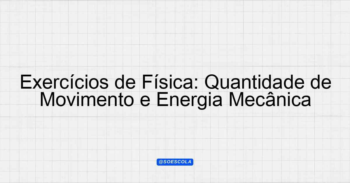 Continue lendoLista de Exercícios – Física 📚 Disciplina: Física 🎓 Série/Ano: 2º ano EM 📖 Conteúdo: Quantidade de Movimento e Energia