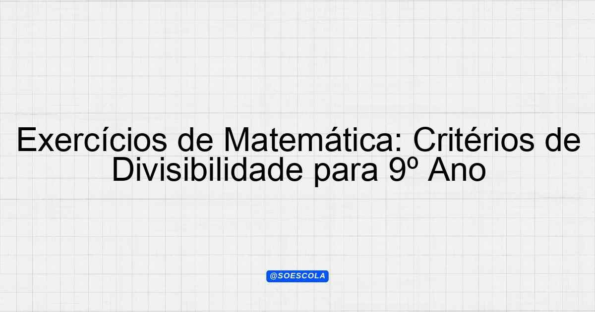Continue lendoLista de Exercícios – Matemática 📚 Disciplina: Matemática 🎓 Série/Ano: 9º ano EF 📖 Conteúdo: critérios de divisibilidade 📝 Número