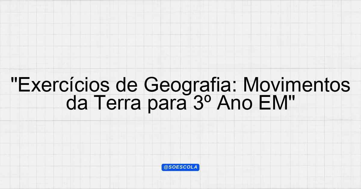 Continue lendoLista de Exercícios – Geografia 📚 Disciplina: Geografia 🎓 Série/Ano: 3º ano EM 📖 Conteúdo: movimentos da Terra 📝 Número