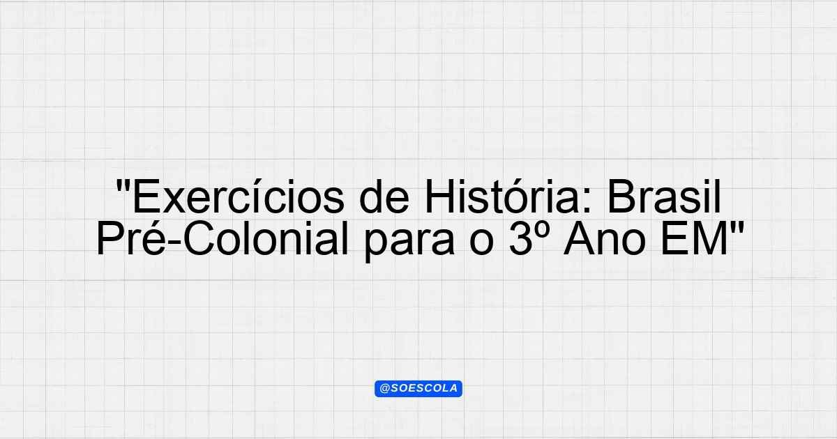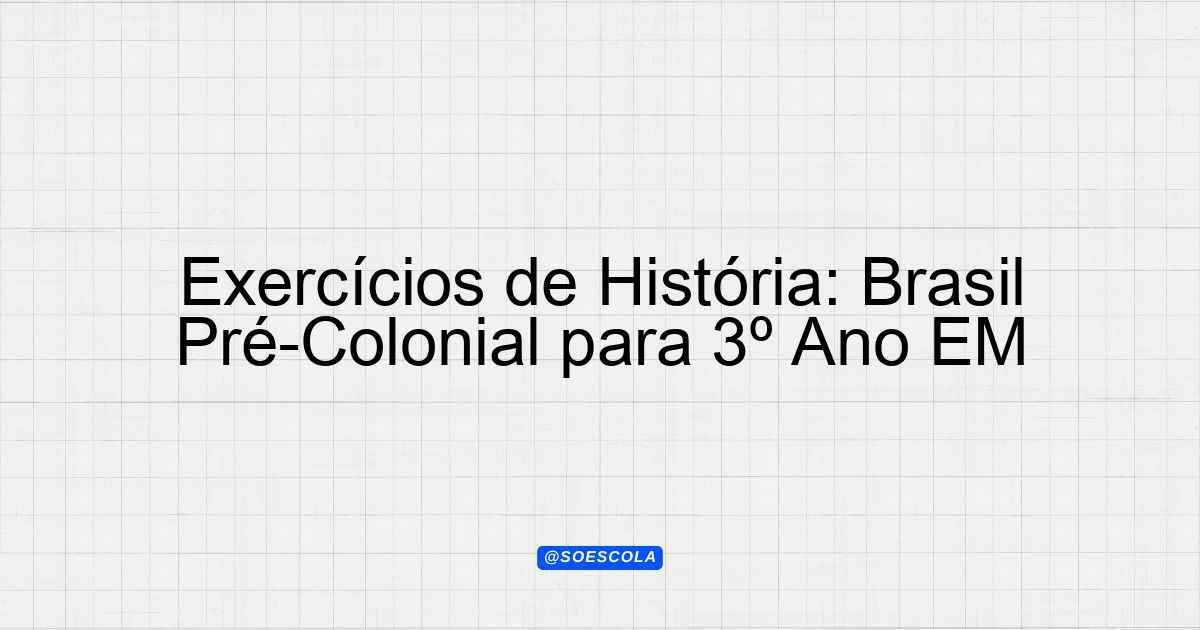 Continue lendoLista de Exercícios – História 📚 Disciplina: História 🎓 Série/Ano: 3º ano EM 📖 Conteúdo: brasil pré-colonial 📝 Número de