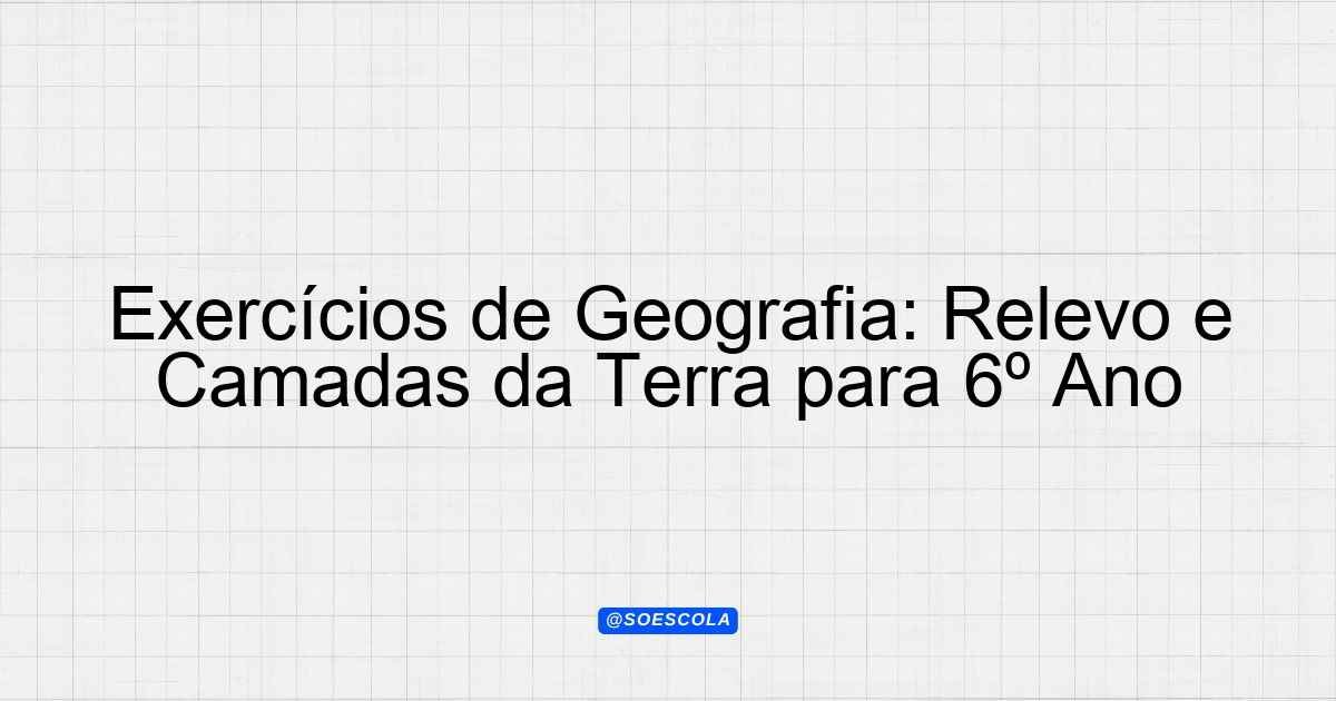 Continue lendoLista de Exercícios – Geografia 📚 Disciplina: Geografia 🎓 Série/Ano: 6º ano EF 📖 Conteúdo: Relevo camadas da Terra 📝