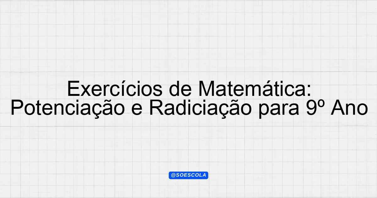Continue lendoLista de Exercícios – Matemática 📚 Disciplina: Matemática 🎓 Série/Ano: 9º ano EF 📖 Conteúdo: POTENCIACAO E RADICIACAO 📝 Número