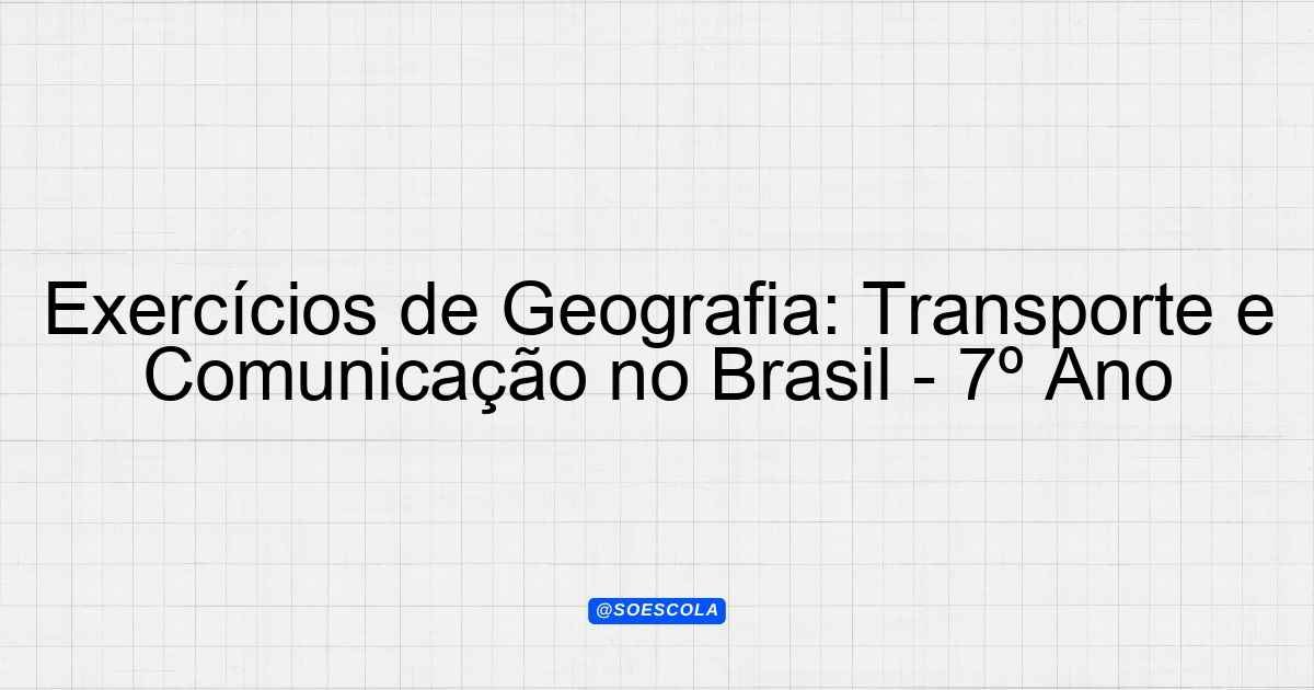 Continue lendoLista de Exercícios – Geografia 📚 Disciplina: Geografia 🎓 Série/Ano: 7º ano EF 📖 Conteúdo: TRANPORTE E COMUNICACAO DO BRAZIL