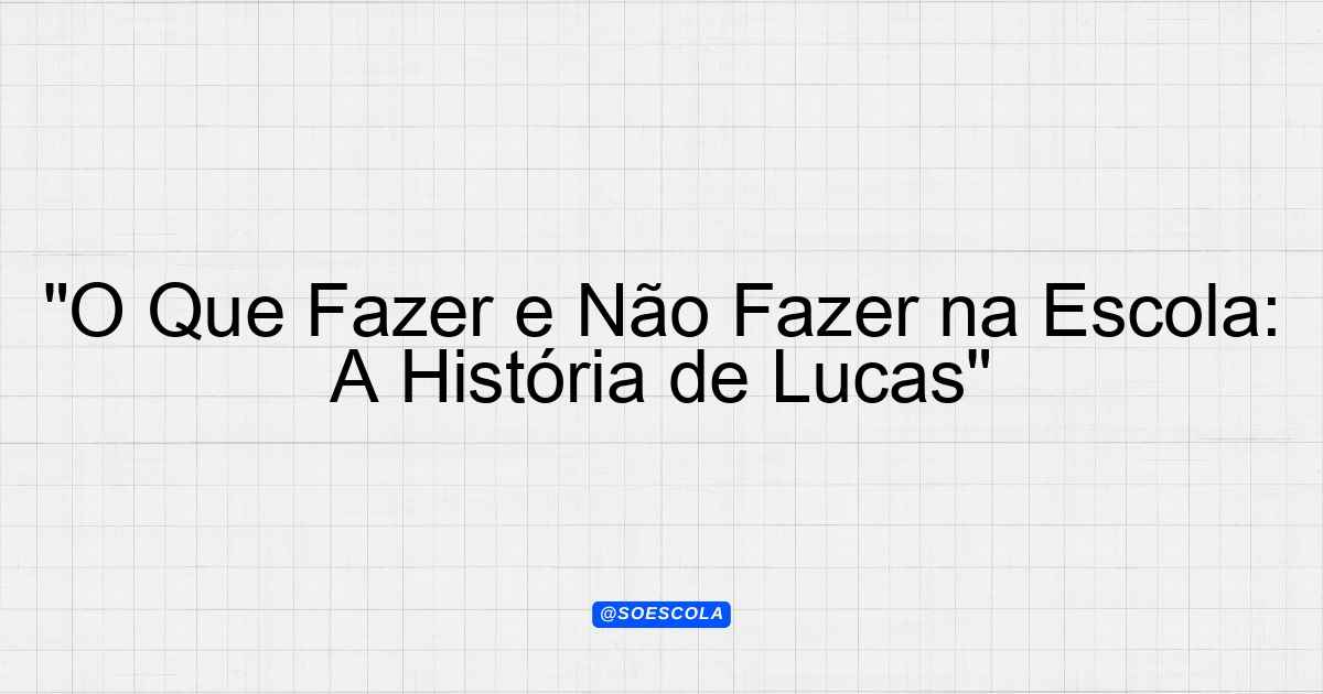 “O Que Fazer e Não Fazer na Escola: A História de Lucas”