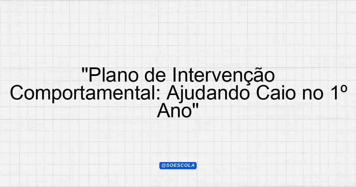 Continue lendoPlano de Intervenção Comportamental 👤 Aluno: Caio 🎓 Série/Ano: 1º ano EF 👥 Turma: A ⚠️ Gravidade: Alta 📅 Data