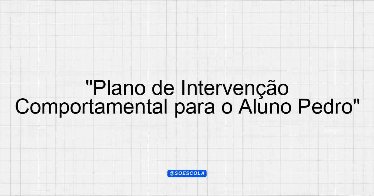 “Plano de Intervenção Comportamental para o Aluno Pedro”