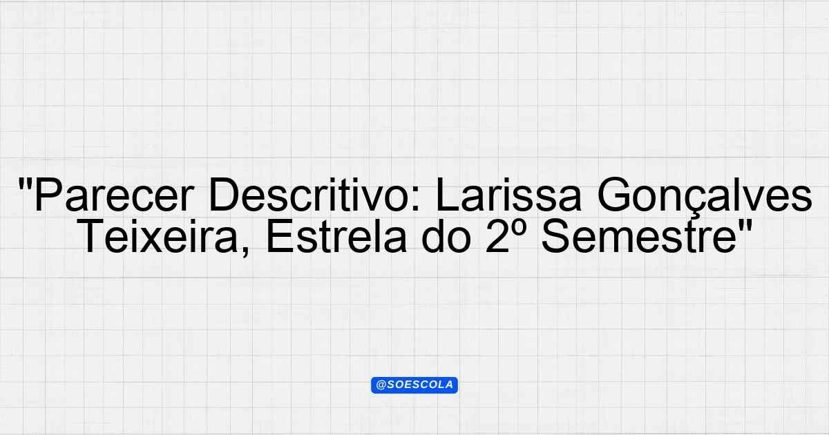 Continue lendoParecer Descritivo – 02 SEMESTRE Aluno(a): LARISSA GONÇALVES TEIXEIRA Nível de Ensino: Fundamental anos iniciais Data: 03/01/2026 “`html Parecer Descritivo