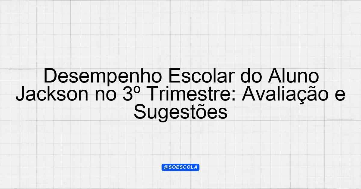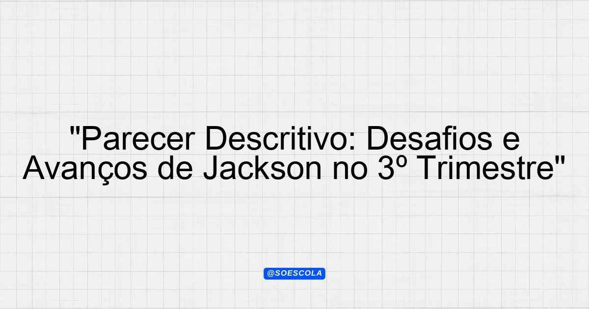 Continue lendoParecer Descritivo – 3º trimestre Aluno(a): Jackson Nível de Ensino: Fundamental anos iniciais Data: 02/12/2025 “`html Parecer Descritivo do Aluno