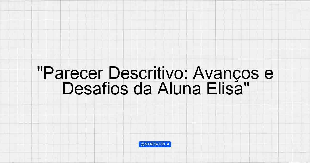 Continue lendoParecer Descritivo – 4º BIMESTRE Aluno(a): Elisa Nível de Ensino: Educacao infantil Data: 15/12/2025 Prezados responsáveis, É com grande satisfação
