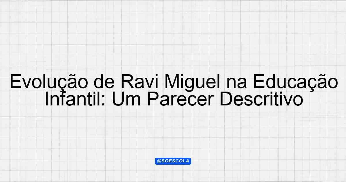 Continue lendoParecer Descritivo – 2 Aluno(a): Ravi Miguel Nível de Ensino: Educacao infantil Data: 27/08/2025 “`html O presente parecer tem como
