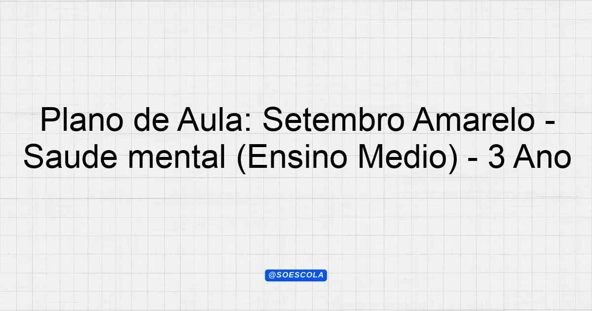 Plano de Aula: Setembro Amarelo – Saúde mental (Ensino Médio) – 3º Ano