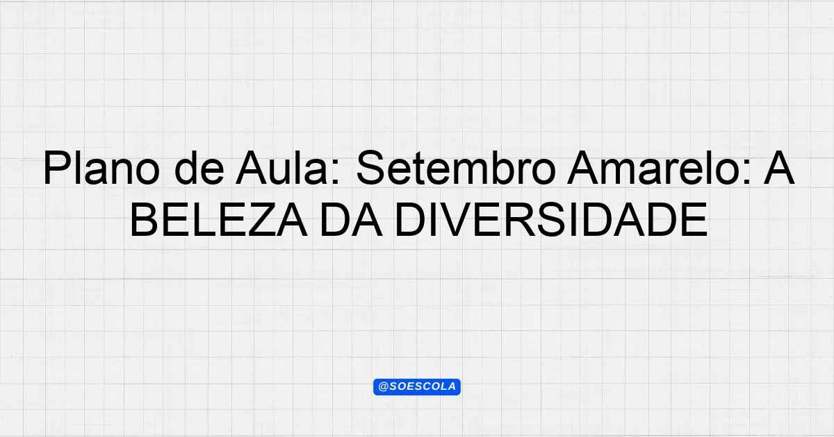 Continue lendoTema: Setembro Amarelo: A BELEZA DA DIVERSIDADE Duração: 1 semana Etapa: Ensino Fundamental I Faixa Etária: 1° ano Objetivo Geral:
