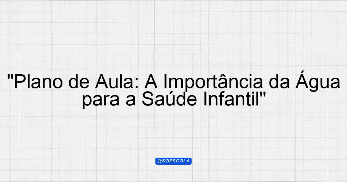 Continue lendoEste plano de aula foi elaborado com o objetivo de trabalhar a importância da água para o nosso corpo no