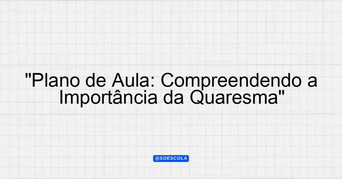 Continue lendoO plano de aula apresentado tem como objetivo explorar o significado da Quaresma, uma importante tradição cristã, suas práticas e