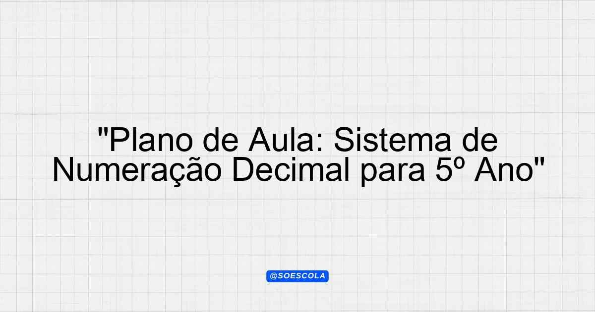Continue lendoA seguir, apresento um plano de aula detalhado sobre o Sistema de Numeração Decimal adequado para o 5º Ano do