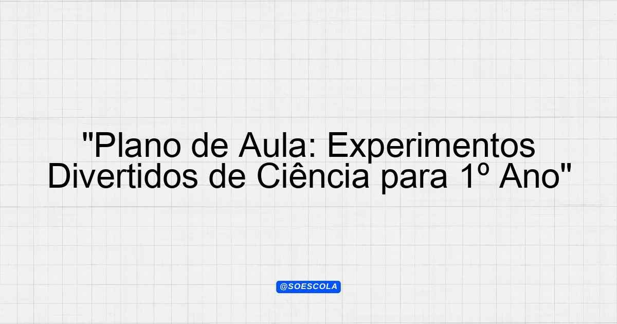 Continue lendoEste plano de aula aborda o tema Ciência e Tecnologia para alunos do 1º ano do Ensino Fundamental. A proposta