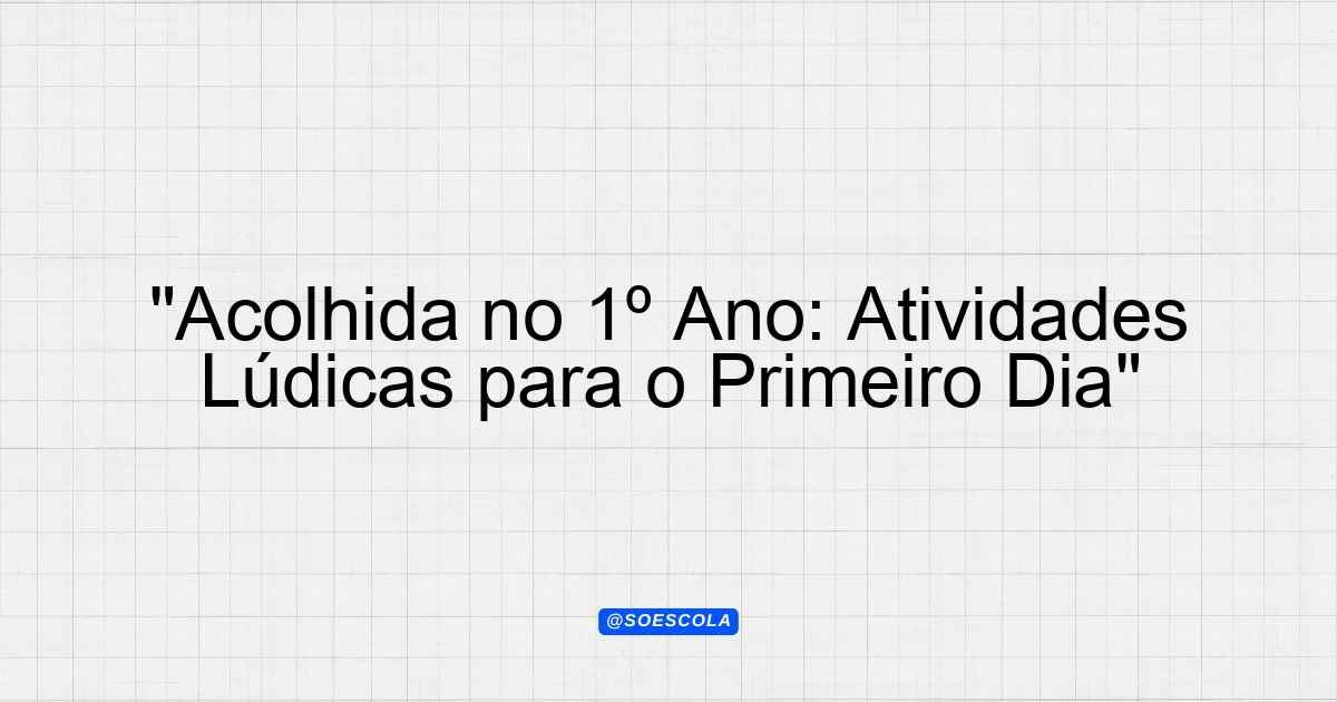 “Acolhida no 1º Ano: Atividades Lúdicas para o Primeiro Dia”