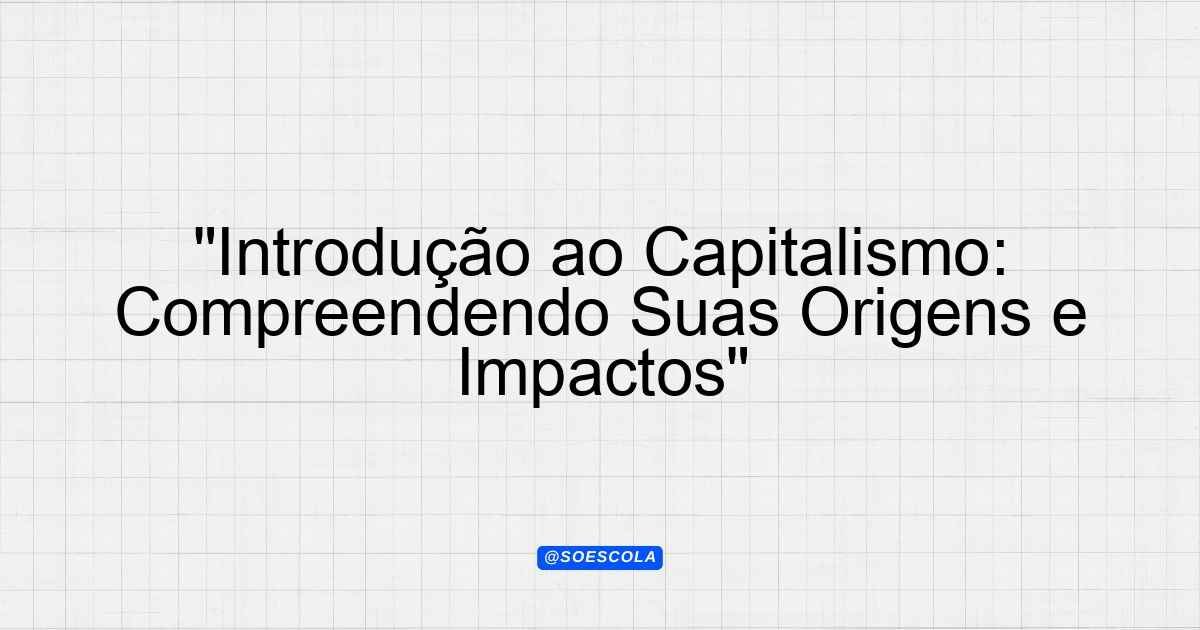 Continue lendoA introdução ao capitalismo é um tema essencial para a compreensão da dinâmica econômica e social contemporânea. Este plano de