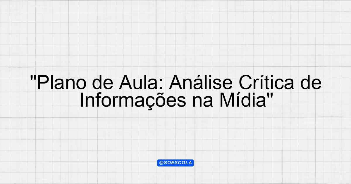 “Plano de Aula: Análise Crítica de Informações na Mídia”
