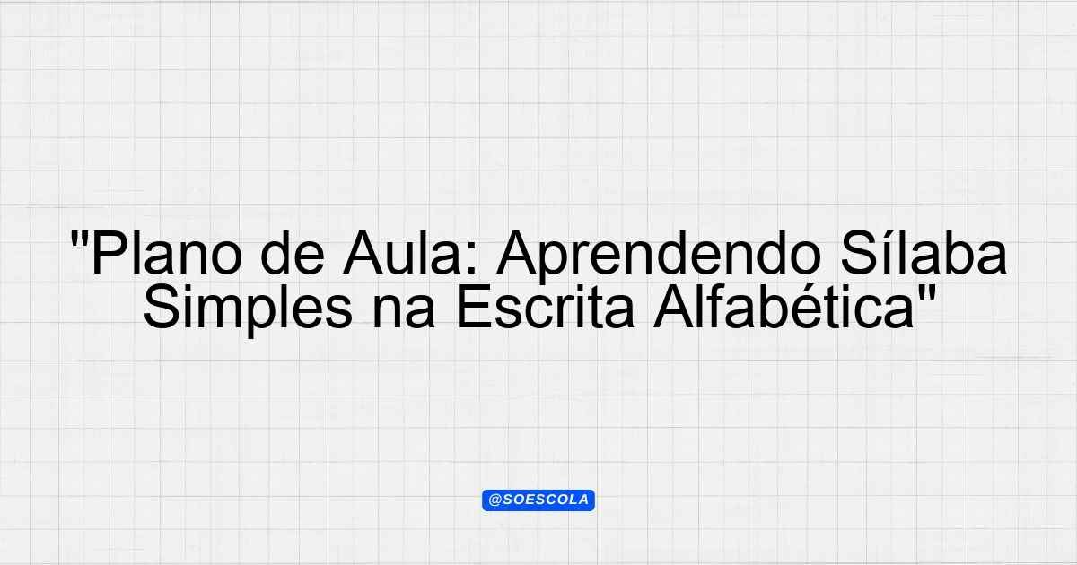 “Plano de Aula: Aprendendo Sílaba Simples na Escrita Alfabética”