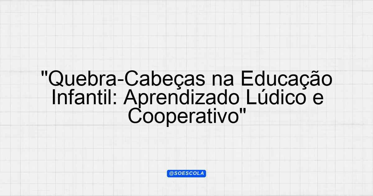 Continue lendoA presente proposta de plano de aula tem como foco o uso de quebra-cabeças na educação infantil, especialmente para crianças