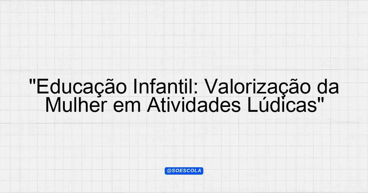 “Educação Infantil: Valorização da Mulher em Atividades Lúdicas”
