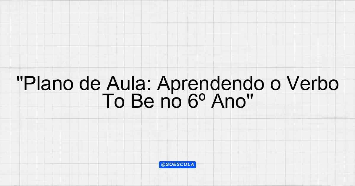 “Plano de Aula: Aprendendo o Verbo To Be no 6º Ano”