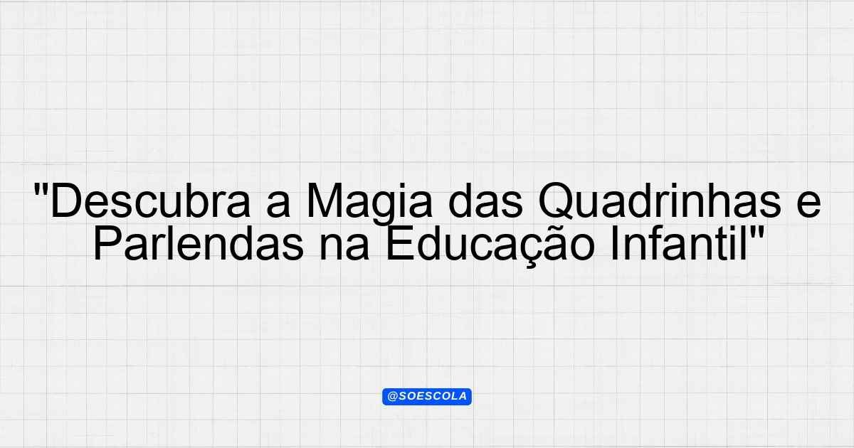 Continue lendoA proposta deste plano de aula visa promover a leitura e as brincadeiras com quadrinhas e parlendas, explorando o universo