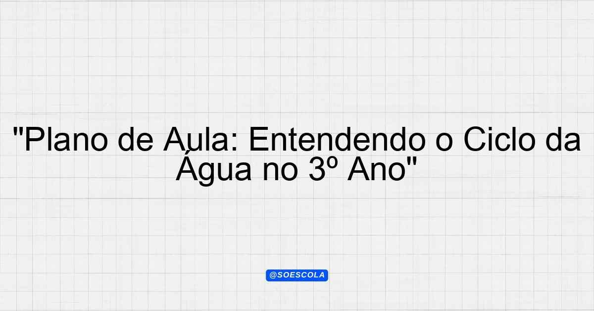 “Plano de Aula: Entendendo o Ciclo da Água no 3º Ano”