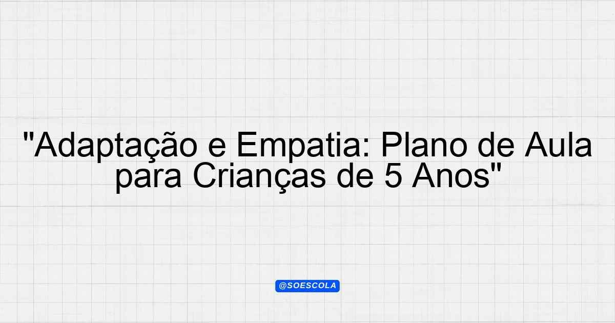 “Adaptação e Empatia: Plano de Aula para Crianças de 5 Anos”