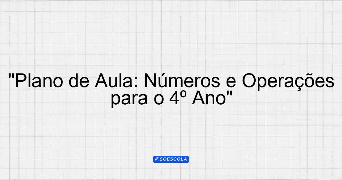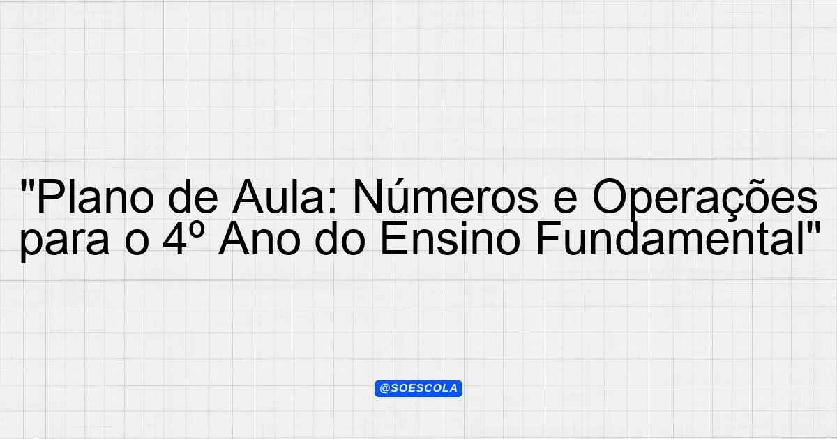 Continue lendoA seguir, apresento um plano de aula detalhado para o 4º ano do Ensino Fundamental, abordando o tema de Números