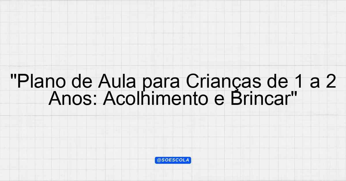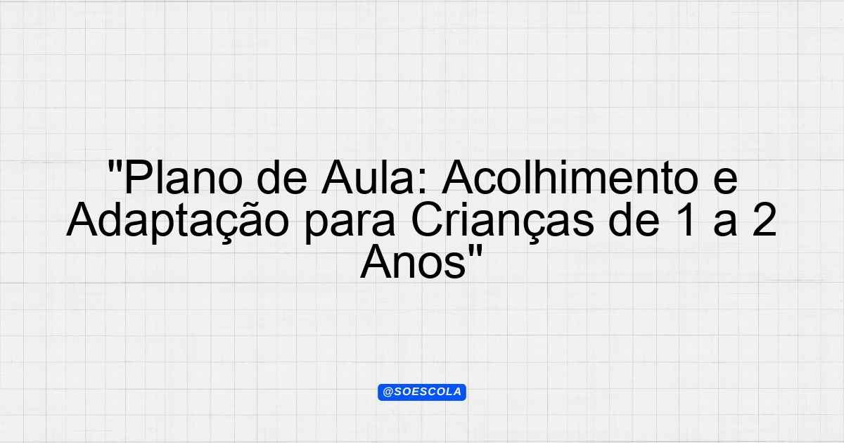 Continue lendoA proposta deste plano de aula é proporcionar uma experiência de acolhimento e adaptação para crianças de 1 a 2