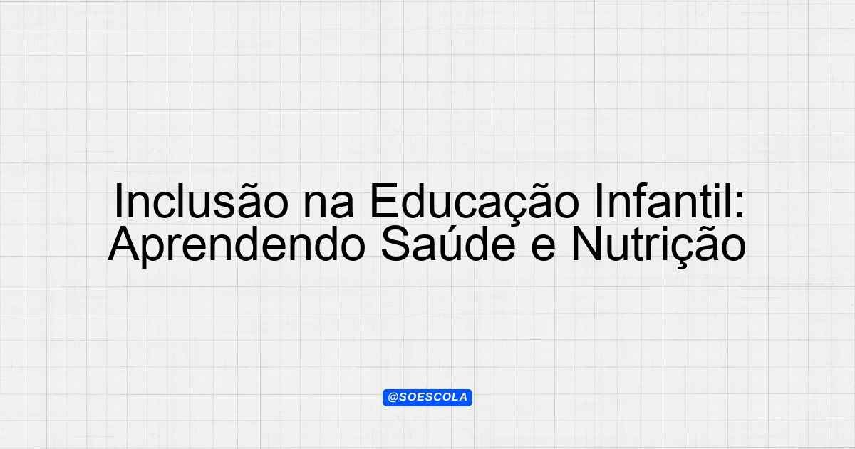 Continue lendoEste plano de aula tem como foco a inclusão na Educação Infantil, especialmente em um contexto onde saúde e nutrição