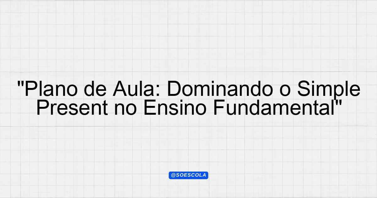 Continue lendoA elaboração deste plano de aula tem como objetivo proporcionar uma compreensão aprofundada do Simple Present, um tempo verbal fundamental