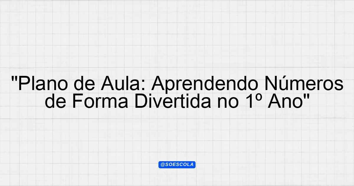 Continue lendoA seguir, apresentamos um plano de aula detalhado para o 1º ano do Ensino Fundamental, focado no tema números. Esta