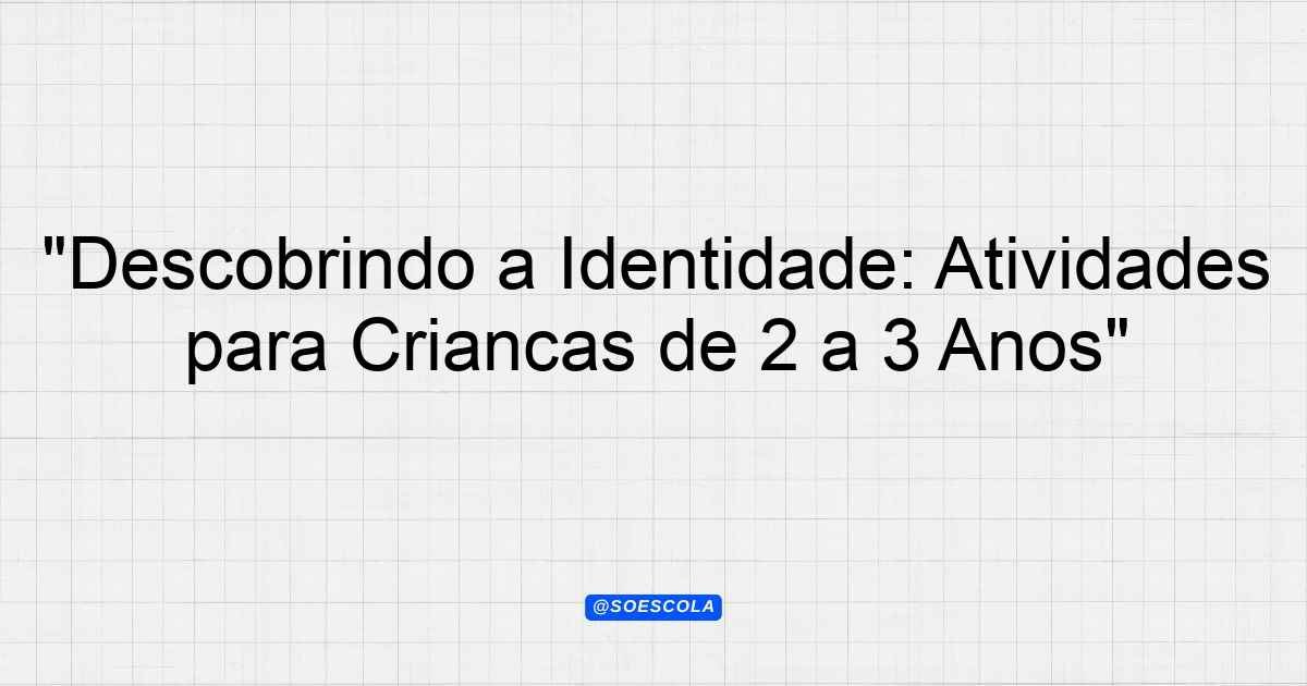 Continue lendoIntrodução O plano de aula que está prestes a ser apresentado tem como tema principal a identidade da criança, buscando